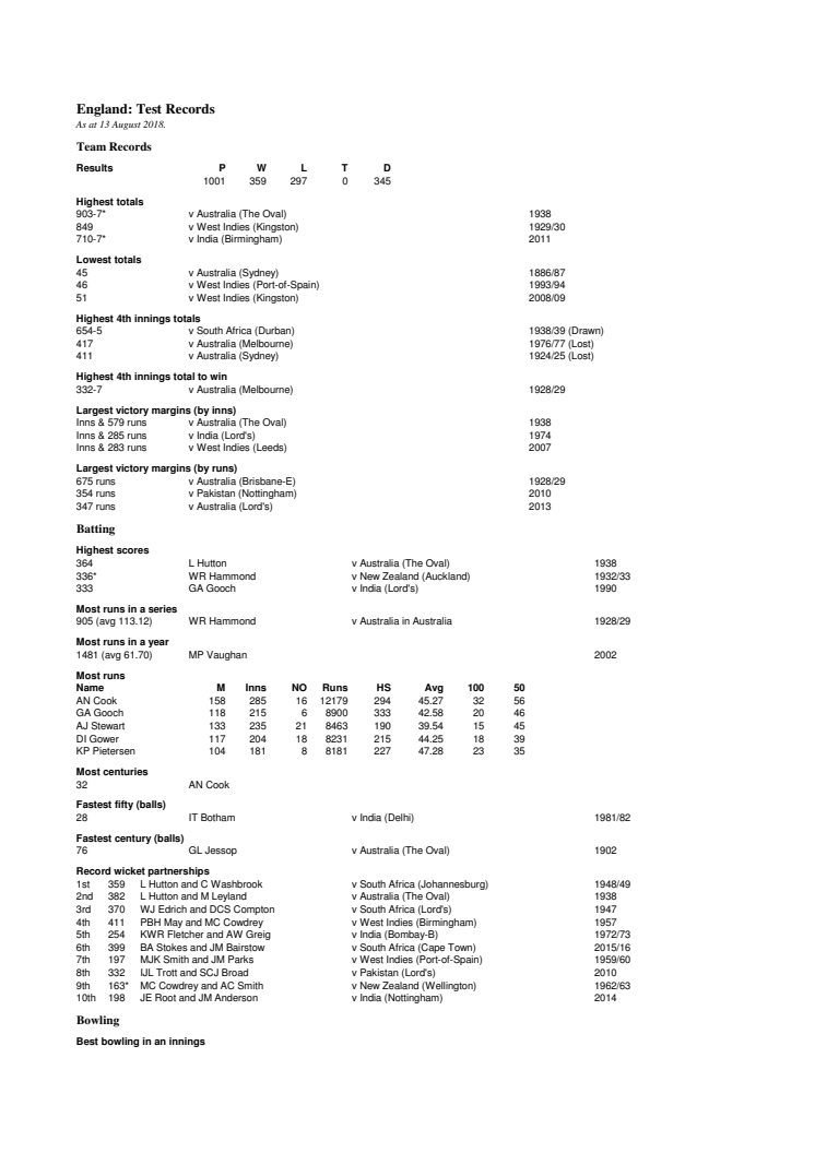 England Test Records