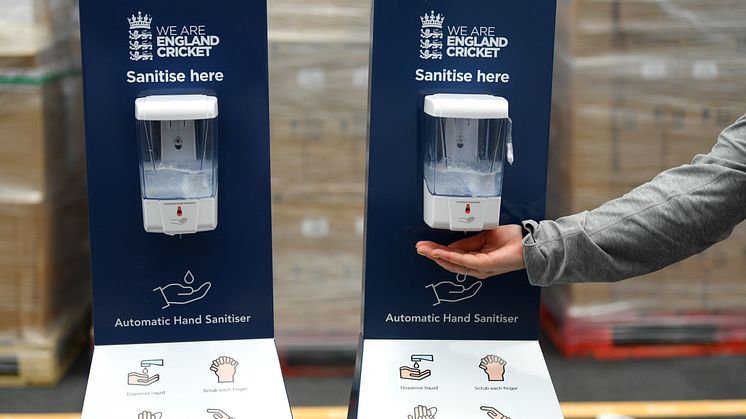 Hand sanitising station installed by the ECB at the Ageas Bowl and Emirates Old Trafford (Getty Images)