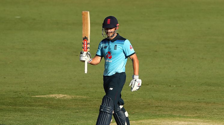In reply, England lost James Bracey in the first over, with Kohler-Cadmore and Tom Abell also falling in the first nine overs. Hain and Evans resurrected the innings, however, adding 154 in 29 overs before Evans was dismissed for 94 by Mitchell Perry.