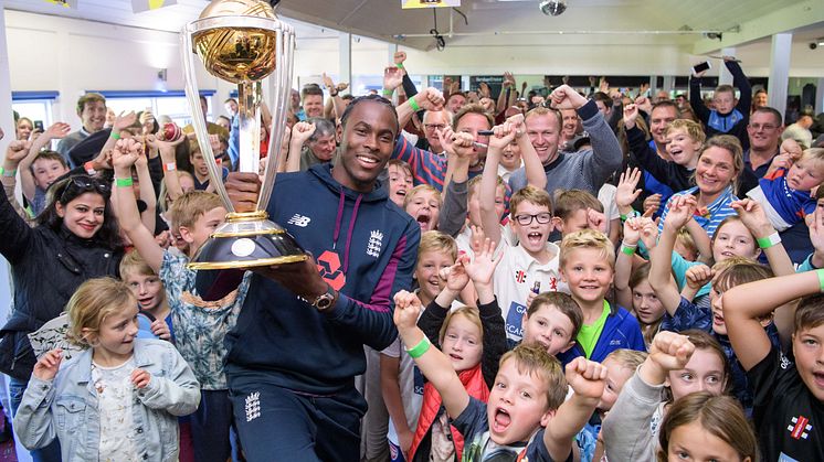 ICC Men’s Cricket World Cup Winner Jofra Archer was at former club Horsham CC yesterday (06/10), inspiring local kids to say ‘cricket is a game for me’ as the famous trophy embarks on a nationwide winners' tour this month.