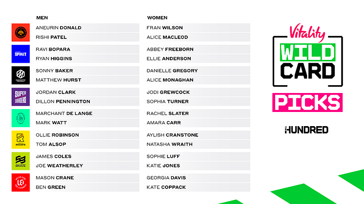 The Hundred squads finalised in Vitality Wildcard Draft